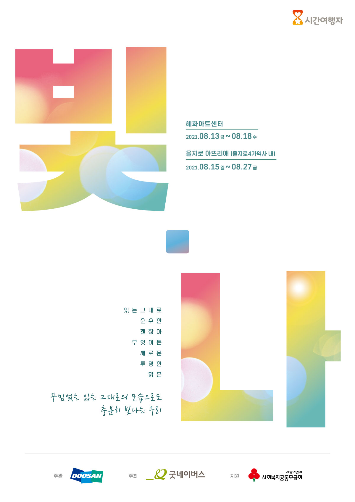 굿네이버스 기획전 - 시간여행자 - 빛 · 나 2021. 08. 13 - 2021. 08. 18