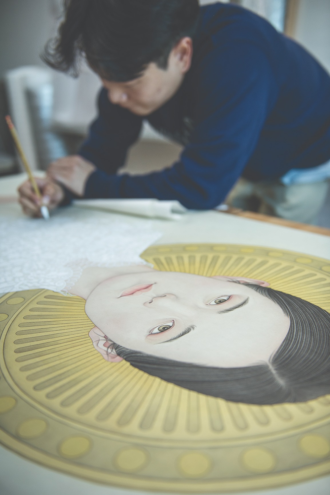 감추고 싶은 85X59 비단에 채색, 가변 설치 2023