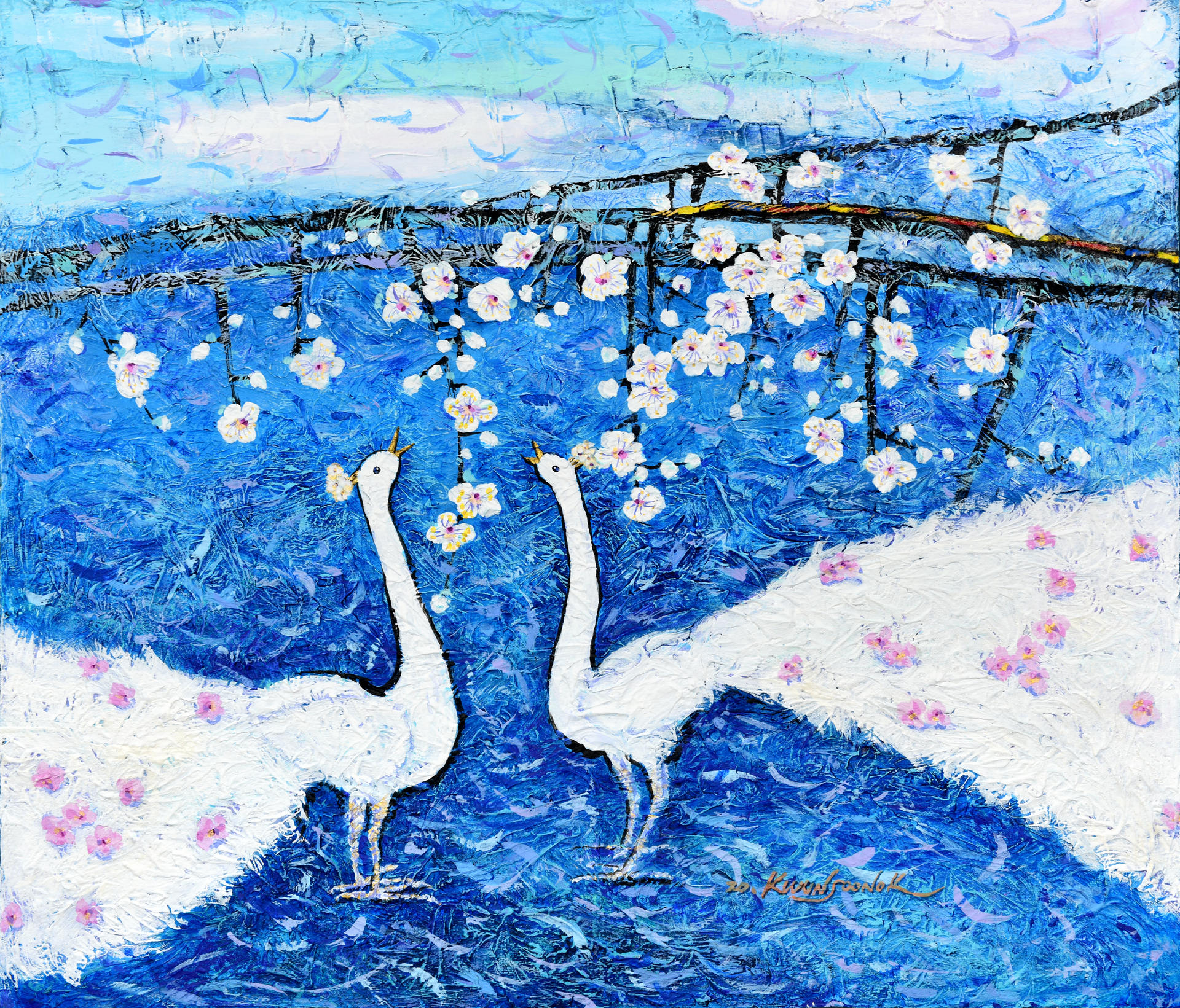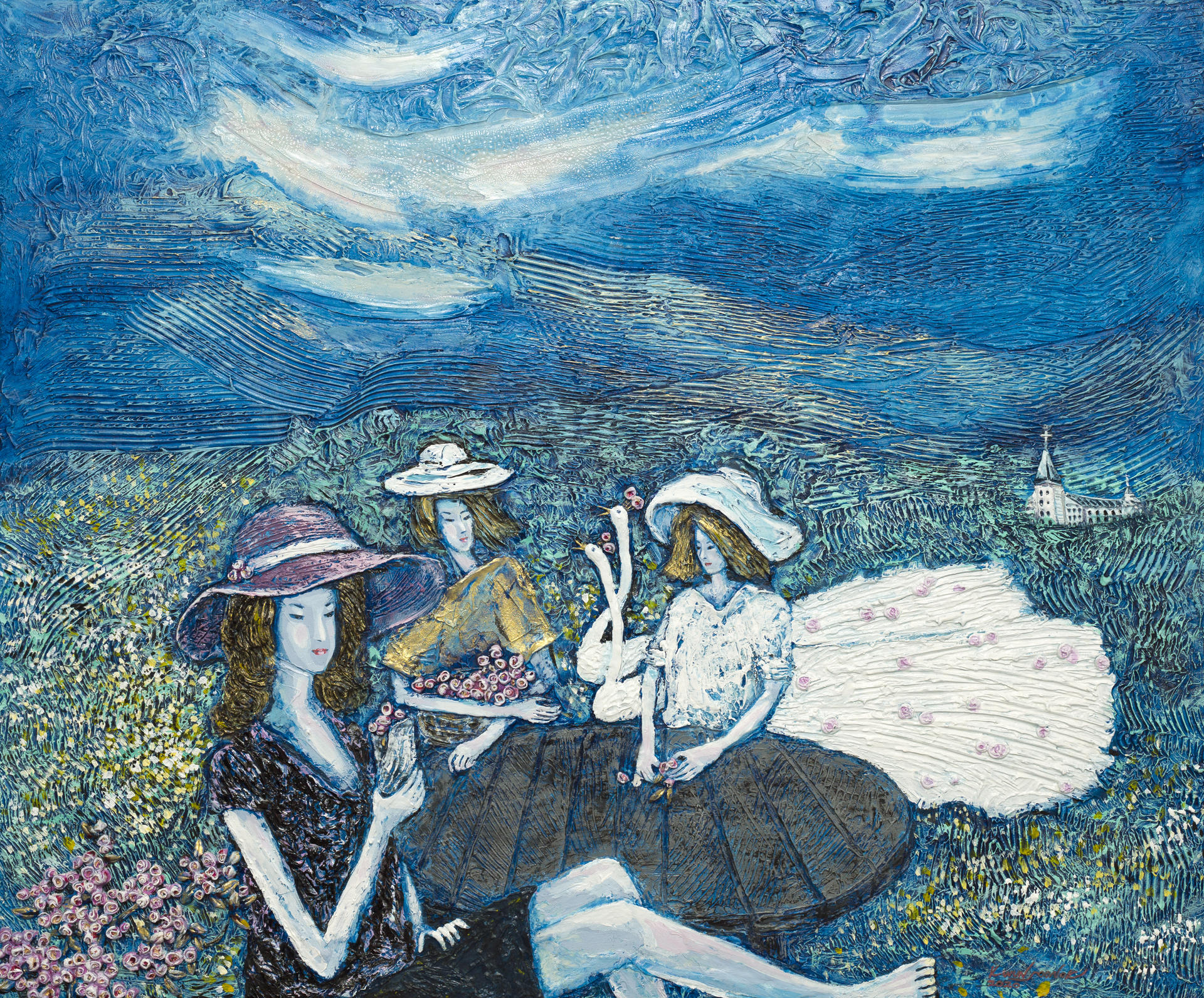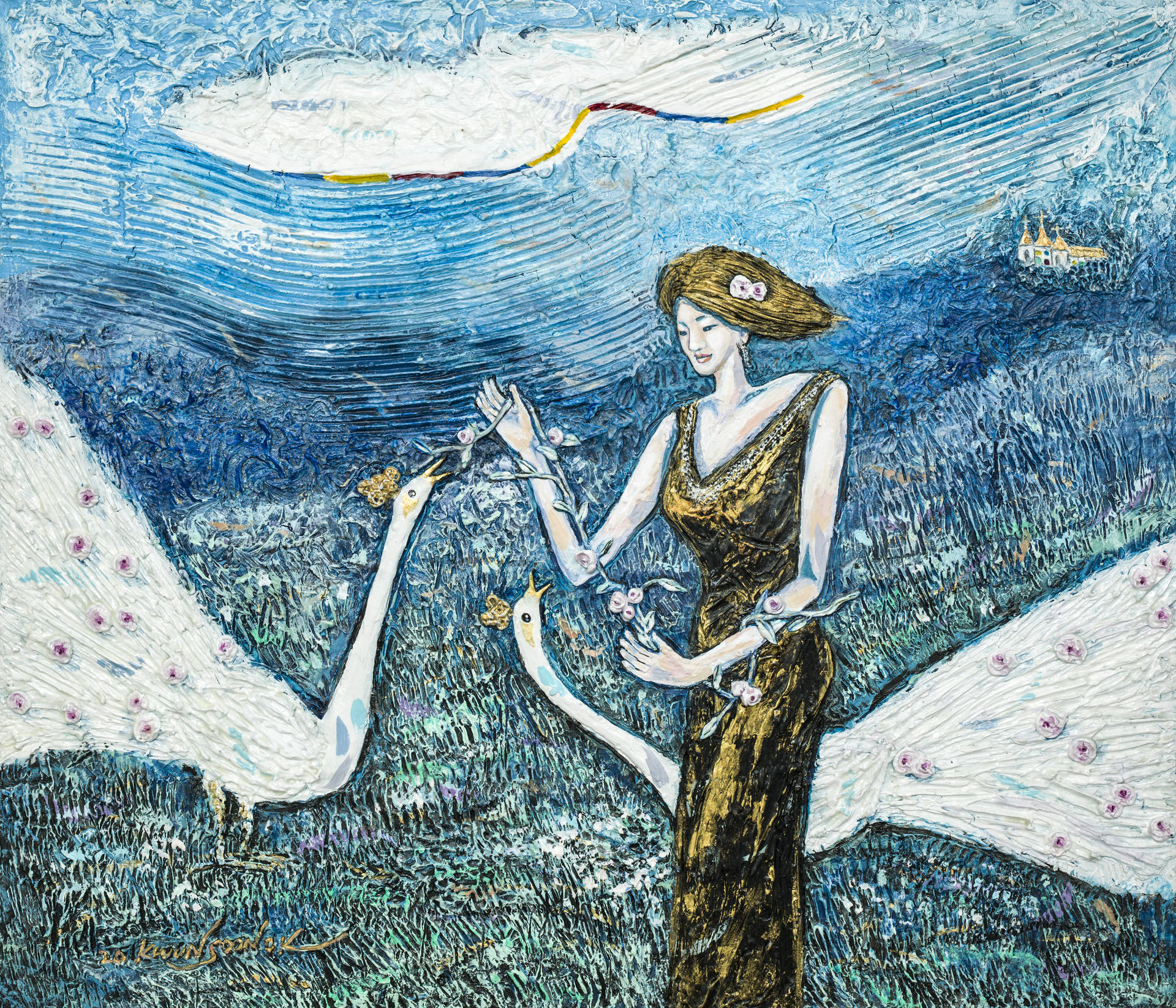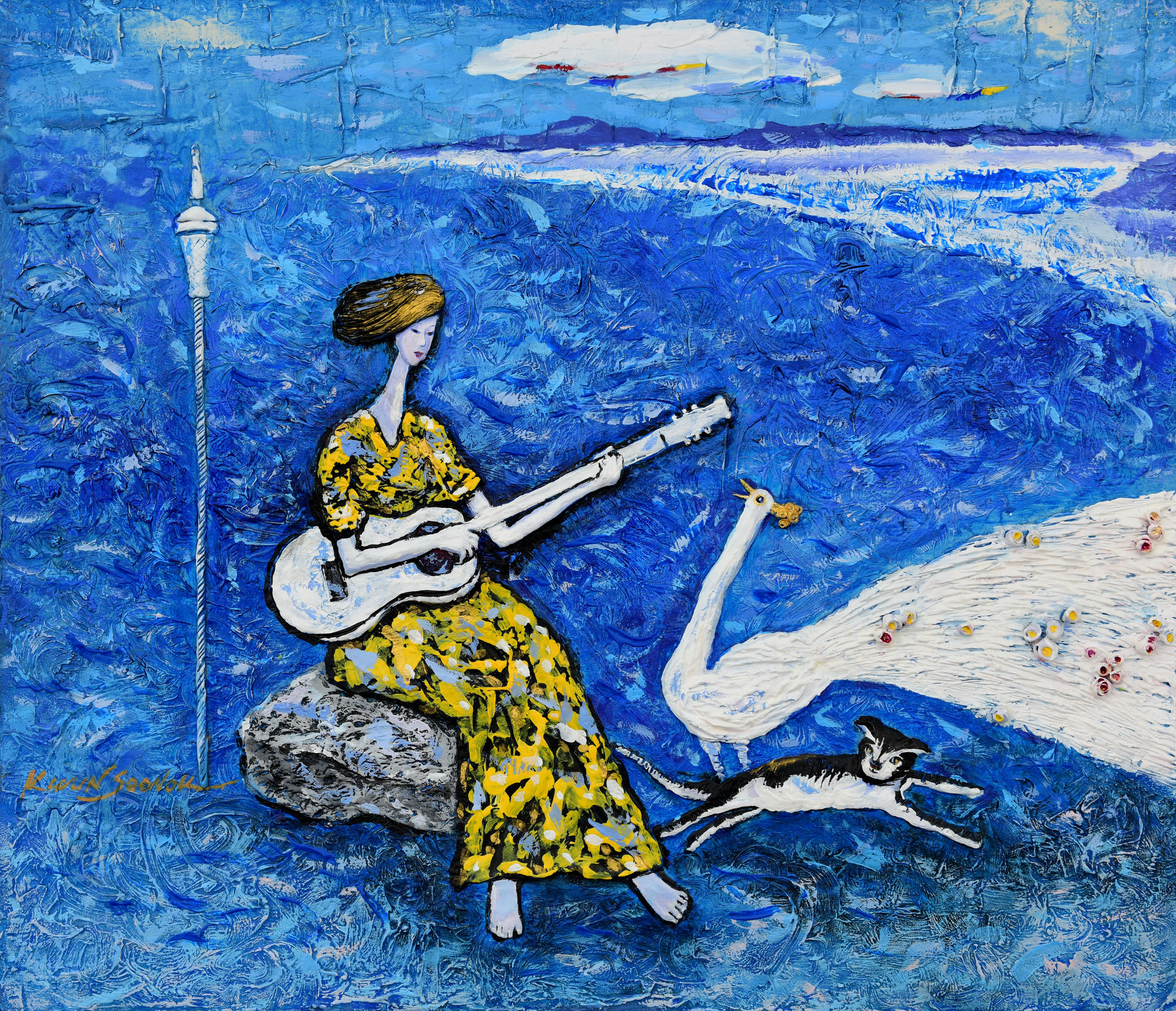 그 이후로 공작이 화면의 주인공으로 등장하기 시작했고, 스토리텔링이 시작되었다. 다리가 짧아 오리를 닮았던 모습이 점점 군더더기를 벗어버리고 나만의 공작으로 형상화되었다. 공작은 나의 삶 속에서 치유되지 않은 내 안의 작은 아이이다. 상처받아 찢어진 깃털을 스스로 치유하긴 어렵지만 상대의 깃을 다듬어 주기는 얼마나 쉬운가? 작은 꽃잎을 모아 주변을 돌보고 나니 어느덧 누군가에 의해 나도 치유가 되었음을 알게 된다. 공작 시리즈를 그리면서 많은 치유를 받았다. 송곳같이 날을 세우고 살아 주변의 사람도 힘들게 하고 자신도 힘들었는데, 어느 날부터 너무도 편안한 나를 보게 되었다. 내 안에 작은 아이를 돌보면서 일상이 행복해졌다. 주변 여건이 바뀐 것은 아무것도 없지만, 공작의 모습을 한 내 분신과 같이 과거를 추억하며 떠나는 여행으로 충분히 즐겁다. 함께하는 세상이 참 아름답다. 내 나이 일흔이 되었지만, 화면 속의 나는 영원히 늙지 않는 꿈많던 젊은 시절의 모습으로 머문다. 화가의 특권이다. 오늘도 나는 가고 싶은 곳, 하고 싶은 것을 상상하며 화판 위에서 부지런히 손을 움직인다.