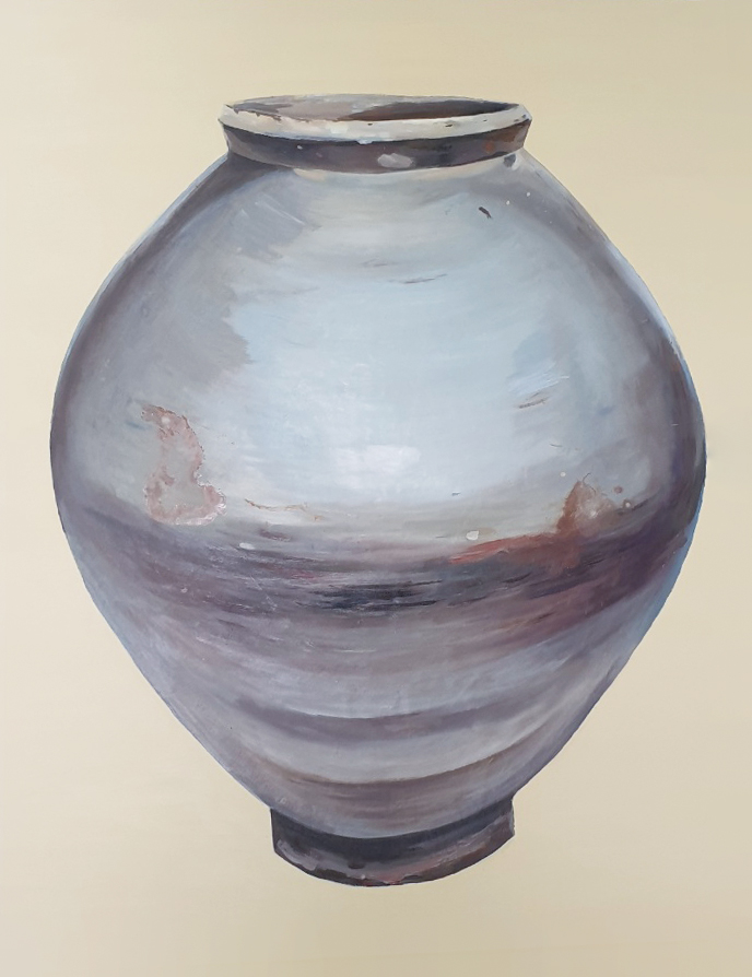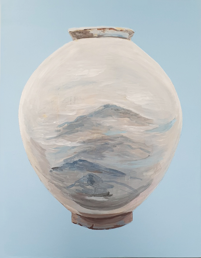 달 항아리 그림을 그리며 생명의 원천과 평온의 기운을 표현 하기위해 노력 했다.