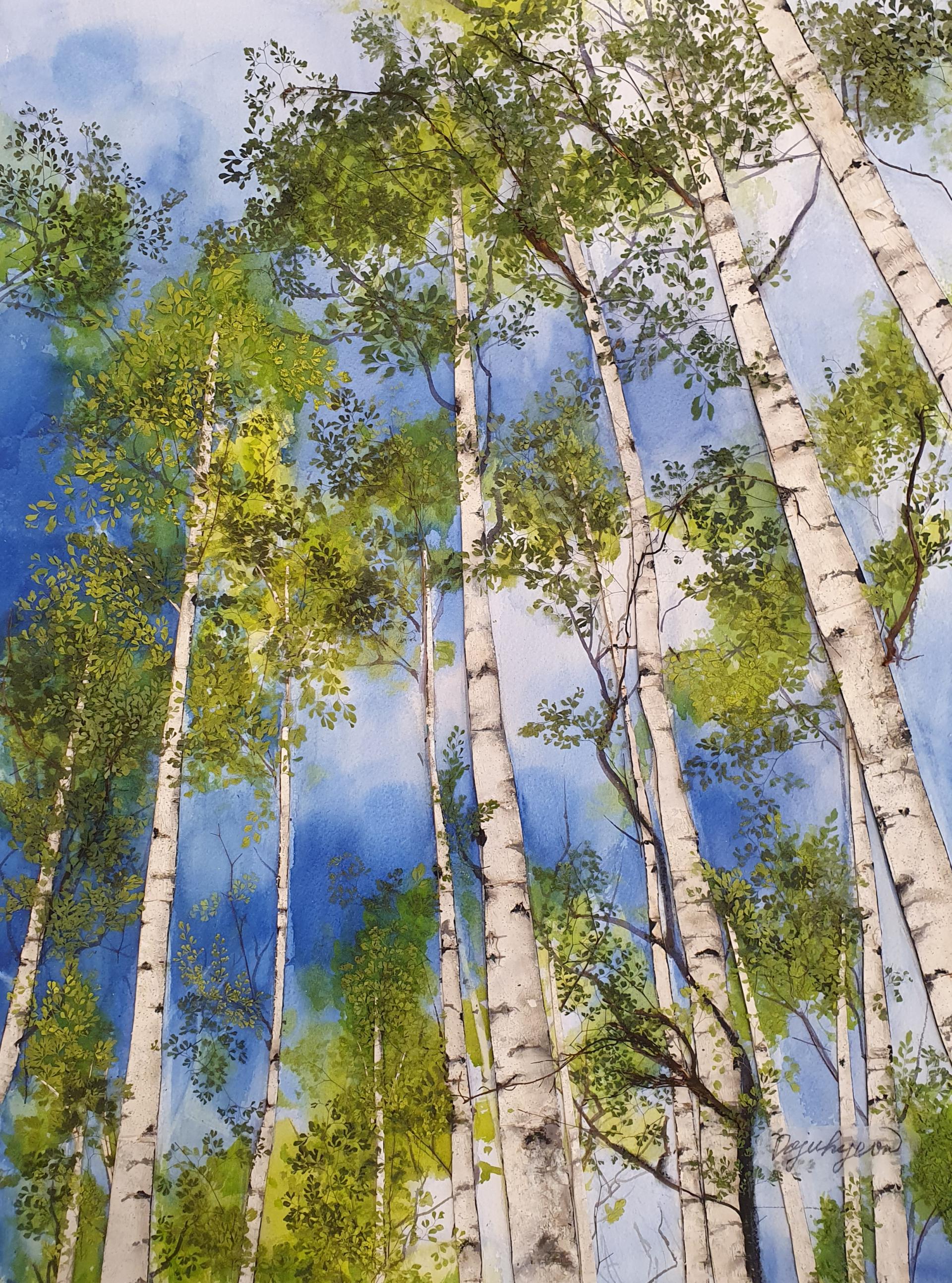 푸르른 어느날 / 61 x 46cm / 종이위에 수채, 압화 / 2024