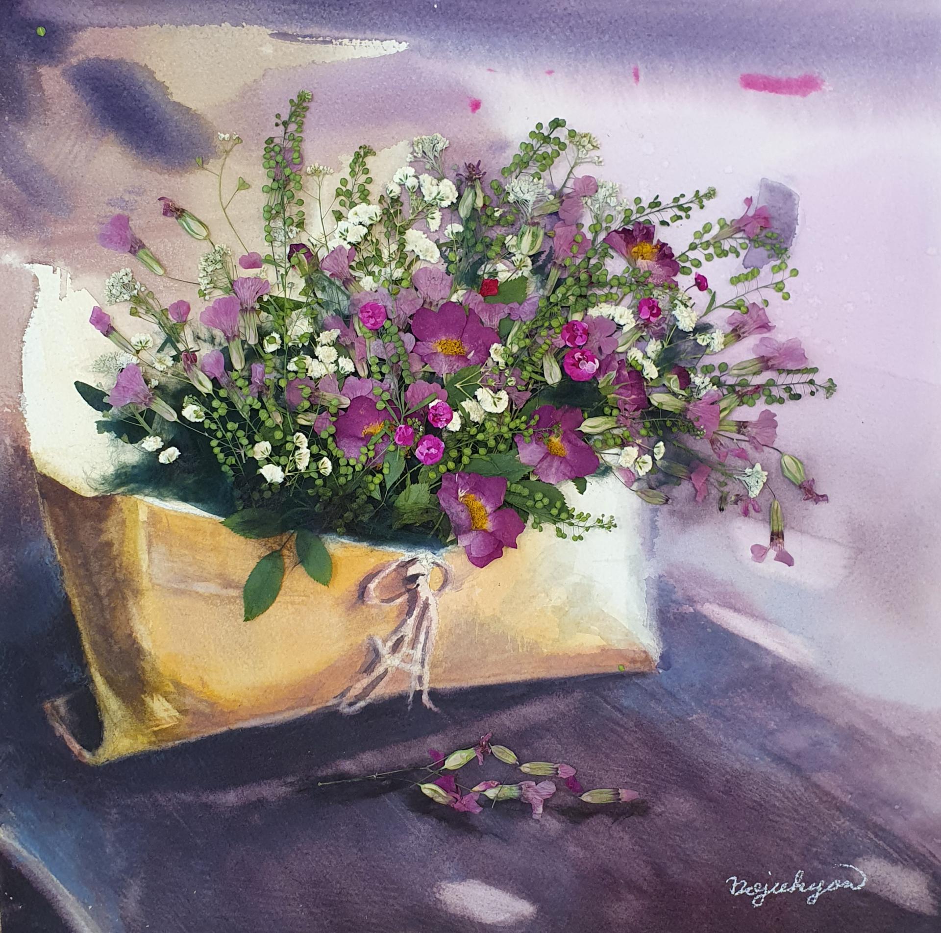 들꽃향기 / 41 x 31cm / 종이위에 수채, 압화 / 2023