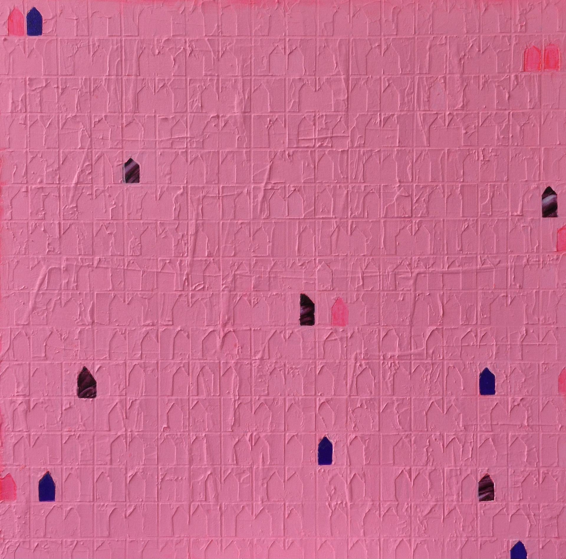붉은식물이 있는집 72x72 Mixed Media 2025
